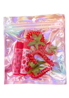 本組商品結合唇膏的日常補妝機能、草莓電話線兼具實用性與造型感的髮飾設計,並搭配專屬包裝袋,整體呈現高實用度與視覺吸引力,打造輕巧好攜、兼顧美感與功能的生活小物組合,適合日常使用與禮贈市場。
