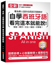 專為華人設計!秒懂易學的西班牙語教材全書除了英拼擬音外,同時加上漢字標音,好記又好唸!結合「聽、說、讀、寫」絕對超值的綜合自學課本初學者需要的文法、單字、會話,這一本全收錄!7種基本時態介紹、21類主 ...