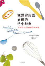 糕點製作常用語必備的法中辭典:糕點師、飲食記者、編輯、翻譯、 饕客不可少,依分類輔以照片,掌握具體涵義,附反查索引與拼音,迅速理解開口說