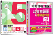 日檢N5教本及寶藏題庫高分合格暢銷套書:合格全攻略!日檢N5教本【聽力,文法,單字,閱讀】,一次通過+絕對合格攻略!新日檢6回全真模擬N5寶藏題庫+通關題解(16K+MP3)