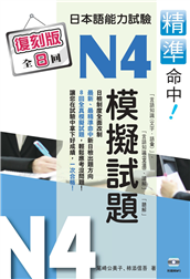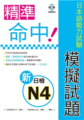 《精準命中新日檢N4模擬試題》是因應自2010年7月開始實施的新制日本語能力試驗,根據交流協會目前為止所公布的例題及出題方向,整理出來的新制測驗對策。相信能為欲報考新制,卻苦尋不到參考指標的讀者,提供 ...