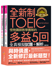 全新制怪物講師教學團隊的TOEIC多益5回全真模擬試題+解析【修訂版】(2書+1CD+文法教學影片+「Youtor App」內含VRP虛擬點讀筆+防水書套) (二手書)