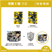 ●《怪獸8號(13)》單行本●壓克力立牌組(本體14.5×10;底座10×4cm)●金屬胸章(3.4×4.5cm). ...