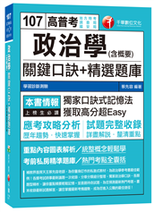 高普考、地方特考、調查局、國安局:政治學(含概要)關鍵口訣+精選題庫-獨家口訣記憶法+重點內容圖表解析+考前私房精準題庫《讀書計畫表》