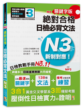 日檢N3爆銷熱賣套書,這套就過關:精修版 新制對應 絕對合格!日檢必背 [單字,文法,閱讀,聽力] N3(25K+MP3)