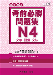 日語檢定 N4 「文字・語彙・文法」問題集收錄10回模擬試題及相關附錄、解說考前衝刺一冊完成!專為日語檢定N4考生編寫的應考問題集。以此為輔反覆練習,必能增強您的考前戰鬥力!日能試驗 N4考試科目、測 ...