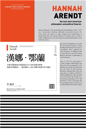 她是漢娜‧鄂蘭,當代共和主義的旗手20世紀最偉大、最具原創性的思想家漢娜‧鄂蘭的名字被書寫在許多理論的開端,其主張與概念引導了後世政治、哲學、人文領域的思想。她批判西方政治哲學大傳統,試圖建立新的政治 ...