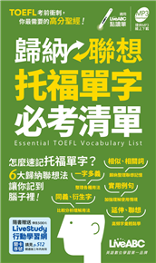 本書內容依歸納聯想方式共分為六大單元:1. 相似詞2. 相關詞3. 延伸4. 一字多義5. 單字聯想6. 單字家族收錄托福測驗(TOEFL)的高頻率字彙,讓讀者在學習單字的過程中以直覺聯想記憶,不再感 ...