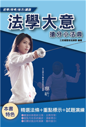 本書適用初等、五等、鐵路佐級等考試,考生於準備考試時可先熟讀由三民輔考出版的「法學大意」內容,建立完整基礎法學概念,並利用單元之後的「精選試題」,驗收學習成效。零碎時間可利用32開口袋書,各種場合都能 ...