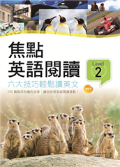 六項全方位的閱讀技巧訓練,有效聚焦閱讀本書包含100篇精采引人的閱讀文章,文章內容囊括各類主題與體裁,範圍涵蓋旅遊、動物、人物、藝術與文學、商業、娛樂、科技、文化、健康等多元內容,讓讀者在學習英文的同 ...
