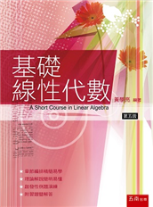 課程教材,全書分為線性聯立方程組與矩陣、行列式、向量空間、線性變換、正交性與特徵值等6章,可做為大學一學期三學分教科書。 全書在架構上針對線性代數基本之核 ...
