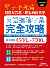 嚴選近十年指考必備字彙依大考中心「高中英文參考詞彙表」45OO~7OOO 選字,符合升大學考試需求,透過閱讀範文認識單字亦可由單字理解範文,雙管齊下,效果加倍!「英語進階字彙完全攻略」是要準備升大學考 ...