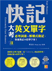 學英文不用天賦,對的方法,英文一定能變厲害!如果,因為《快記大考英文單字 Ⅰ》,你學會了記單字比別人厲害的「10倍量快又多」的方法,那麼,經過名師精心整理的《快記大考英文單字 Ⅱ》,能讓你記更多重要的 ...