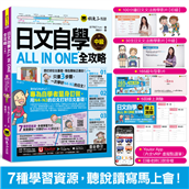日文自學ALL IN ONE全攻略【初級】(附100分鐘老師真人教學文法影片+100分鐘單字學習影片+50音筆順練習表+「Youtor App」內含VRP虛擬點讀筆) (二手書)