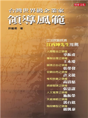 本書探討九位台灣世界級企業家的領導風格,包括辜振甫、王永慶、張榮發、許文龍、高清愿、張忠謀、施振榮、郭台銘及嚴凱泰,期能藉由他們的人格特質、奮鬥經歷及