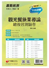 導論」課程綱要編寫,對課程加以系統化的整理,輔助讀者準備參加升四技科大考試前對「觀光餐旅業導論」科目總複習。 書中將課程內容系統化、邏輯化整理出重點,並搭 ...