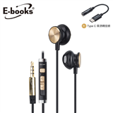 SS23 磁吸線控耳塞式耳機附Type C音源轉接線-黑【E-books】