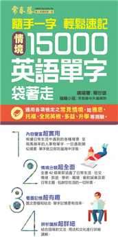囊括所有情境!生活與考試必備的《情境 15000 英語單字袋著走》,翻轉您的人生!本書主題涵蓋生活會遇到的各種情境,熟讀本書即可掌握 15,000 到 20,000 個字彙以及其用法,讓您面對生活情境 ...