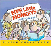 After their mama reads to them, it's bedtime for the Five Little Monkeys. But they can't resist read ...