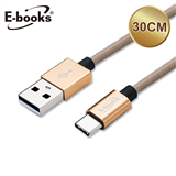X74 Type C 鋁合金QC 3.0 快充傳輸線30cm-金【E-books】