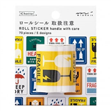 MIDORI Chotto 禮物包裝貼紙捲-禮物包裝上不可或缺的重點色。寫著小小話語的包裝貼紙,是為包裝添上心意、說出台詞的主角。Chotto貼紙捲 小心輕放款貼紙上印有 「FRAGILE」, 「KE ...