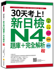 ◆佳評如潮!造福無數新日檢應考者!您正傷腦筋該怎麼準備新日檢N4嗎?除了死背硬記單字之外,為了熟悉考試題型,您是否還在考慮一次寫個完整5回、10回的模擬考題呢?不知道該怎麼規劃考前時間的考生看過來!覺 ...