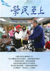 大鵬主委到輔導會服務的第二年,更熟稔業務,再三親訪各榮院、榮家及榮服處,主動挖掘榮民需求,並督促所屬全面整合內外部資源,傾力滿足榮民需要。如此劍及履及、戮力從公,實踐了「大鵬與你們同在」的精神。. ...