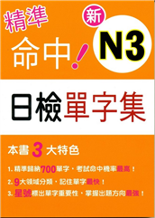 《精準命中新日檢N3模擬試題》是因應自2010年7月開始實施的新制日本語能力試驗,根據交流協會目前為止所公布的例題及出題方向,整理出來的新制測驗對策。相信能為欲報考新制,卻苦尋不到參考指標的讀者,提供 ...