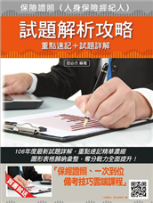 ★依105.12.28最新保險法編修★★重點速記+試題詳解=輕鬆考上★★收錄101~105年試題詳解★★購買本書掃描書封QRCODE即可獲得保經證照一次到位備考技巧講座雲端課程★【書籍特色】1.105 ...