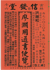 信發堂廖淵用通書 庚子年通書特色:1.增編嫁娶十六歲至五十歲熟記廿四字每月初一甲子即知全年農曆甲子掌中推圖訣每日宜忌事增刊神佛聖誕千秋增編六十透地龍分金坐度吉凶斷增生肖辦公桌財位參考手掌圖式簡單推男女 ...