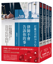 《律師不會告訴你的事.法律實戰四部曲》──長銷近20年,為數萬當事人指引法律地圖打贏官司的心法,操作訴訟的要領,揭露司法的現實,抓住法官的思維。掌握你必須知道的風險與遊戲規則,學習最全面的訴訟作戰藝術 ...