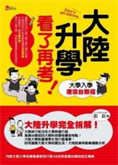 教育部調查顯示:22.8 % 的家長考慮讓孩子到大陸就學!大學品牌對第一份工作有決定性的加分作用!港澳台大陸大學的招生考試(簡稱「港澳台聯招」)每年3月至4月間報名,6月考試。【本書內容】.大陸升學完 ...