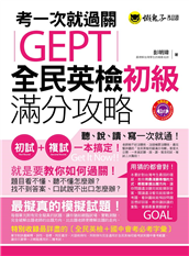 「全民英檢GEPT初級」真的很簡單,只要有看就會過關,而且考試成績廣被各級學校、升學、公家單位採用,因此讀者千萬要好好把握。《考一次就過關GEPT全民英檢初級滿分攻略》,「初試」、「複試」一本搞定!「 ...