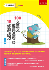 全書以100則文言文經典名句寫成100篇作文,寫每篇作文都各自運用一種修辭技巧來起頭,全書共有十五種破題技巧,例如:建立疑問法、驚嘆共鳴法、如果假設法、引述名言法、顛倒順序法、開門見山法等等。市面上相 ...