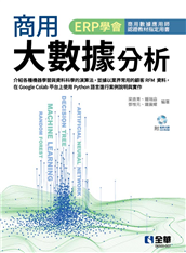 中華企業資源規劃學會「商用數據應用師」認證教材指定用書過去在商用大數據分析上,多著重在演算法的介紹,內容過於側重數理理解,這讓許多商管學生為之卻步。更有甚者,是太著重在程式撰寫上,這也讓沒有程式基礎的 ...