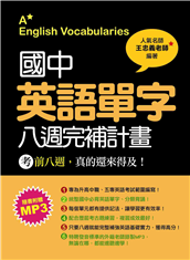國中會考前八週,真的還來得及!英文科目,讀這本就夠了!專為升高中職英語考試範圍編寫,統整國中必背英語單字、分類背誦,並配合歷屆考古題練習,只要八週就能完整補強英語基礎實力,獲得高分!單字分類既完整又仔 ...