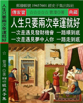 人生只要兩次幸運就好:一次是遇見發財機會 一路順到底 一次是遇見夢中人你 一路走到底