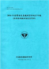 本港灣觀測海氣象資料統計年報,包括臺北、基隆、蘇澳、花蓮、臺東、高雄、安平、布袋、臺中、澎湖、金門及馬祖等12個港域,2016年觀測波浪資料之觀測記錄表及各項統計表及統計圖。. ...