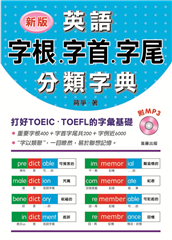 破解字根、字首、字尾的奧秘迅速倍增英語字彙量! 英文單字多如繁星,若是字字死背,不但容易忘記也沒有效率,但如果破解單字暗藏的密碼與含義,學會分析單字,就能迅速倍增字彙量!『熟知字根300個,不知 ...