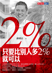 人與猩猩的基因差異只有2%,就是這麼微小的差異,讓人之所以為人。生活也是如此,如果你能夠比旁人多2%的認真、2%的熱忱、2%的積極、2%的自信,就能進階到下一個層次,展現你的獨特。正在讀這本書的你,很 ...