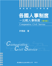 本書增訂14版,全書共19章。書中「國家別」部分僅7章,其餘除首章緒論外,皆屬「制度別」11章,書名雖仍稱為各國人事制度,但實已偏向「比較人事制度」。各國人事制度之內容,包含政制、法規、國情與生態諸項 ...