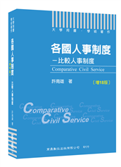 本書增訂13版,全書共19章。書中「國家別」部分僅7章,其餘除首章緒論外,皆屬「制度別」11章,書名雖仍稱為各國人事制度,但實已偏向「比較人事制度」。各國人事制度之內容,包含政制、法規、國情與生態諸項 ...