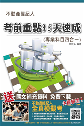 《不動產經紀人考前重點35天速成(專業科目四合一)》依104年7月最新修法編寫!『多擁有一張證照,專業就多一分肯定』〝購買本書掃描書封QRCODE即可獲贈國文補充資料及免費登記參加乙次不動產經紀人全真 ...