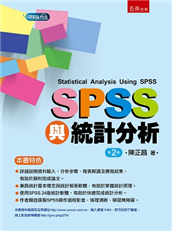 本書特色●詳細說明資料輸入、分析步驟、報表解讀及撰寫結果,有助於順利完成論文●兼具統計基本概念與統計報表軟體,有助於掌握統計原理。●使用SPSS 24版最新統計軟體,有助於快速完成統計分析。●作者親自 ...