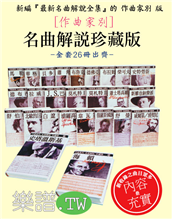 耗費近十年的決心與毅力名曲解說珍藏版 全套26本 終於全部出齊為此一值得特別祝賀的日子本站特此優惠 讓愛樂的您便於收藏!. ...