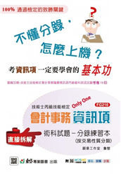 產品特色: 1.拆解題組,按部就班 唯一按部就班、奠定資訊項檢定基礎之輔助教材。拆解題組(每題皆標示題組號碼),直接練習分錄,提早熟悉檢定題目,縮短上機空窗期! 2.解題訣竅, ...