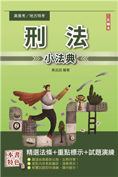 ★嚴謹收錄最新法條,去蕪存菁!★重點內容系統編排,清晰標示!★相關試題即時演練,隨時搶分!【適用對象】這本《刑法小法典》適用於:.普通考試(普考)法律廉政.地方政府公務人員考試(地方特考)四等法律廉政 ...