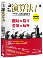 日常生活的演算問題→加了註解的Python程式碼+大量可愛插圖=用最簡單的方式學會演算法本書使用大量插圖與生活實例,讓您以最簡單快速的方式進入演算法領域。翻開本書,您可透過不同主題的圖示與說明,輕鬆理 ...