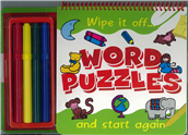 The pages of this reusable activity book can be wiped clean, so that the word puzzles can be complet ...