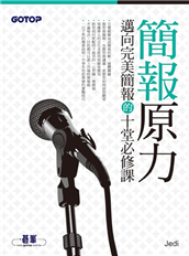 .完整破解成功簡報的軟、硬體關鍵.教你做簡報,也教你做講義,更教你如何面對聽眾.根據華人的文化及使用經驗來撰寫.教你如何搭配時下最夯「心智圖」做簡報.不論場合、目的都可以派上用場的簡報術.一目了然的簡 ...
